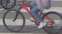 Bike: mtb; Fork: black,suspension; Frame: red; Busket; Handlebar: flat; Main tube